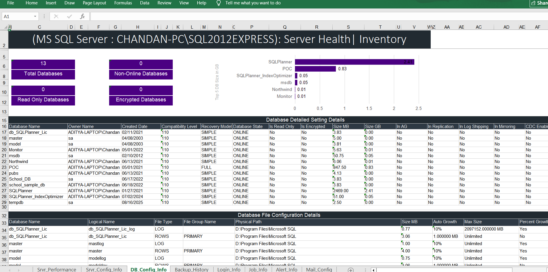 DB Health Pro is an ultra-lightweight (<25 MB) utility that generates comprehensive health reports, performance analytics, inventory summaries, and more for multiple database platforms—in as little as two seconds or with just two clicks.