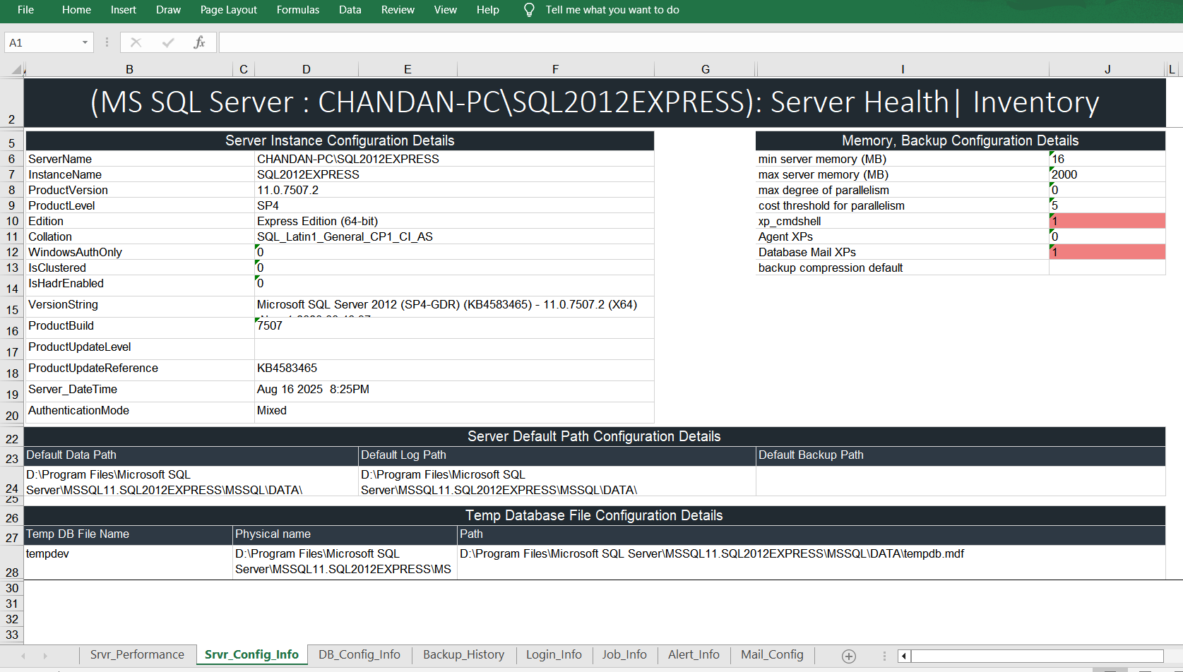 - Server Configuration (OS, CPU, DB Level) report