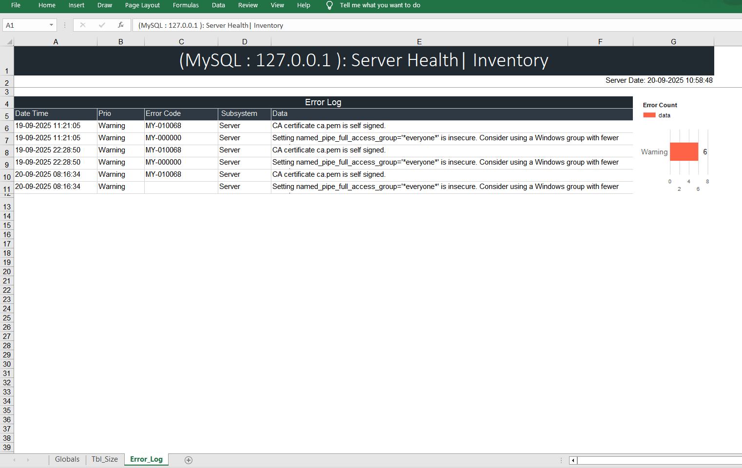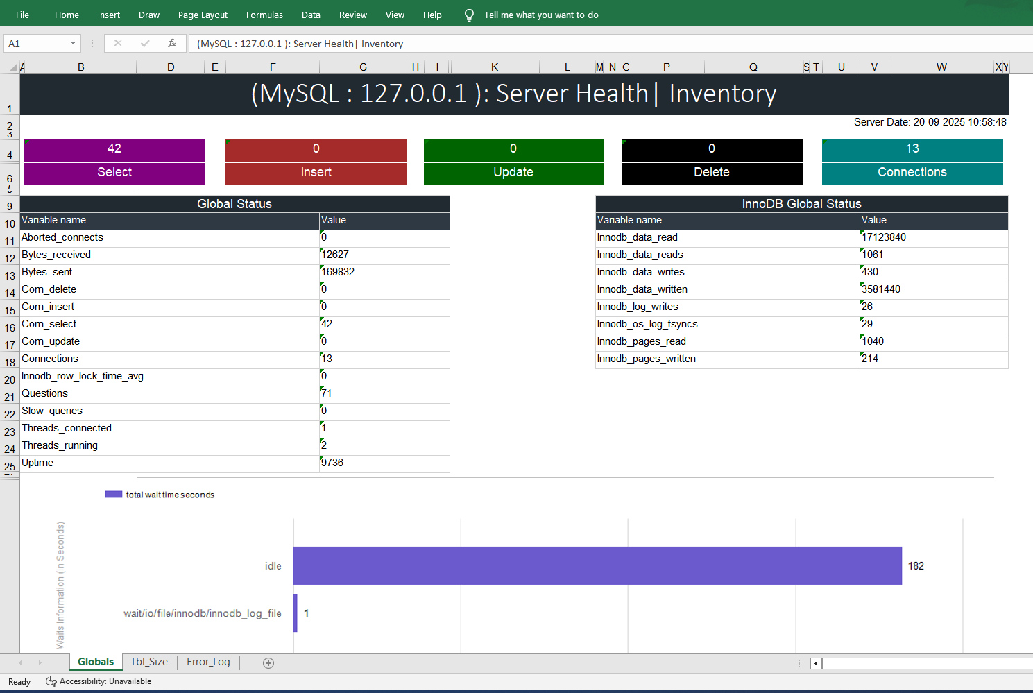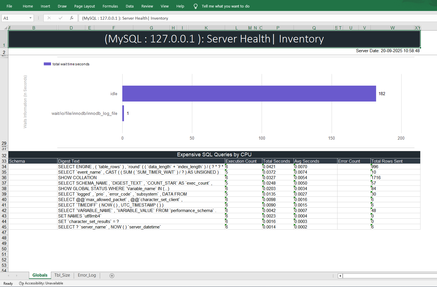 DB Health Pro Screen Shots of MySQL Server Reports